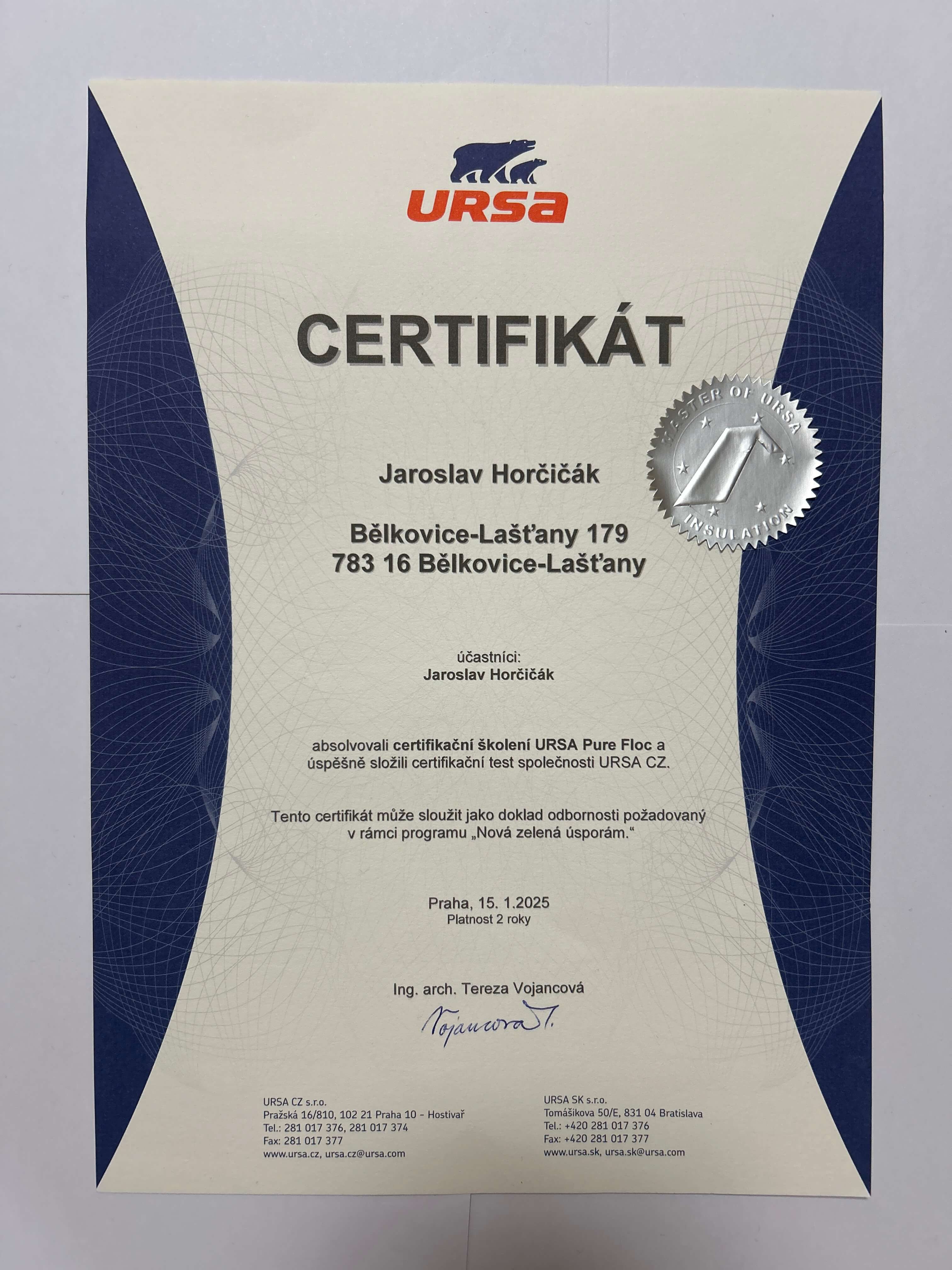 Pravidelně se školíme k aplikaci foukané izolace Supafil od Knauf Insulation a Pure Floc od Ursa